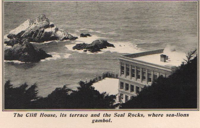 the Golden Gate, stands the famous Cliff House, set in the land-rock with