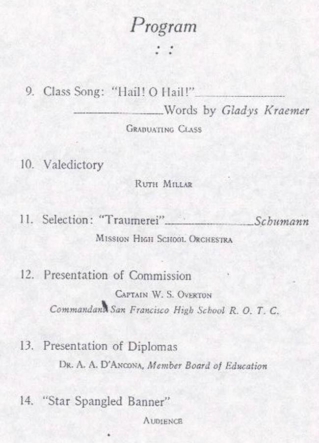 Return to December 1921 Mission High School Commencement